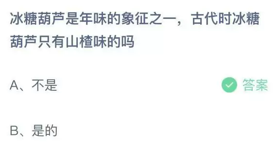 支付宝蚂蚁庄园小课堂2月20日每日一题答案是什么?支付宝蚂蚁庄园小课堂每天的凌晨更新一道题目,答对后能领取小鸡饲料,今天的问题是“冰糖葫芦是年味的象征之一,古代时冰糖葫芦只有山楂味的吗?”不知道答案的朋友不妨随三大妈小编一起来看看吧。
