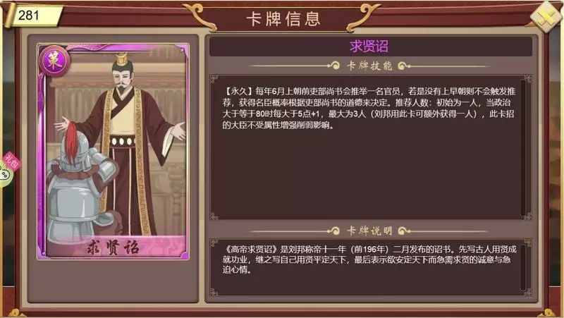 其余策卡:【求贤诏】【狼奔豕突】【三顾茅庐】