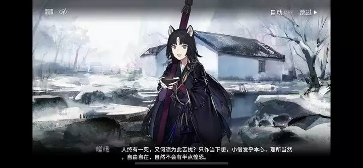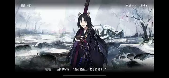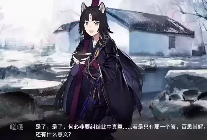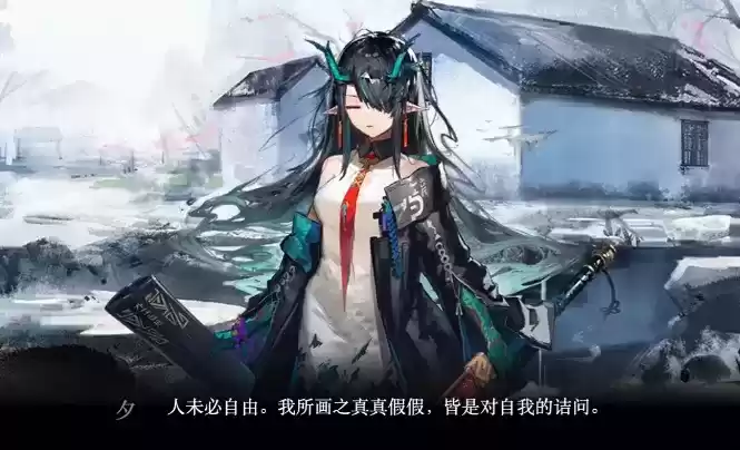 看完剧情,大家会觉得《画中人》讲的是现实与虚拟,出世和入世,结合炎国背景和炎国传统思想,尤其是大家普遍接受的九年义务教育而言,这个答案是绝对不会有什么问题的;毕竟,年、夕和嵯峨的立场交锋与最终和解简直就像是把中国传统思想儒释道三教合一的牌子摆到了大家跟前,甚至三个人的很多台词和技能名都直接找了三家经典作品中的原句。比如说,“不以物喜,不以己悲”(夕基建技能),“以有形摹无垠,以无垠应天下”(夕战斗台词),“看山还是山,看水还是水”……