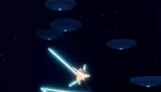 2、到达四楼后,一直往上飞,可以看到头顶上有几个移动平台。