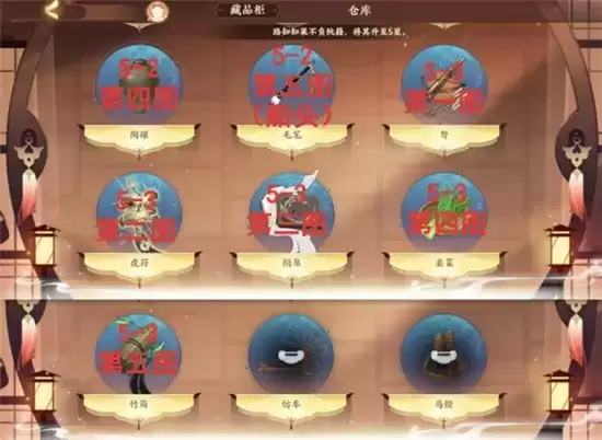 目前游戏中的文物分为橙色和蓝色两个品质,橙色的文物收集难度非常的大,下面就是所有文物的收集方法,都用红字标注在图中了。