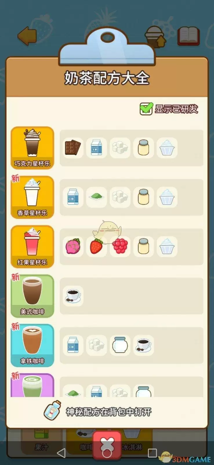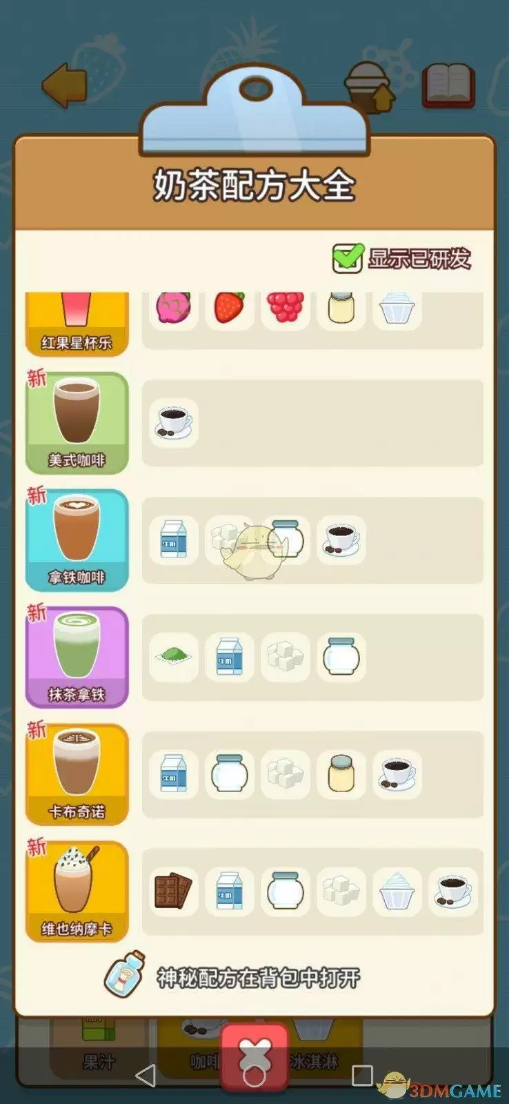 在我的奶茶屋手游中配方有哪些呢?开奶茶店那么品种就会有很多,每种奶茶都有自己的配方,里面的配方都不相同,那么想知道配方大全汇总的就跟随小编一起来看看吧。