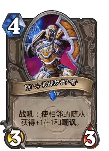 中立:鱼人宝宝、叫嚣的中士、奥术畸体、巫医、年轻的女祭司、狼人渗透者、精灵弓箭手、银色侍从、鱼人招潮者、齿轮大师、吵吵机器人、夺日者间谍、年轻的酒仙、战利品贮藏者、毒物学家、淡水鳄、狗头人地卜师、疯狂投弹者、疯狂的炼金师、自爆绵羊、蛛魔之卵、血帆袭击者、血法师萨尔诺斯、酸性沼泽软泥怪、鱼人猎潮者、丛林猎豹、光明之翼、冰霜暴怒者、南海船长、大地之环先知、孤胆英雄、寒光先知、巨齿刀叶、石皮蜥蜴、穆克拉、蜘蛛坦克、负伤剑圣、铁喙猫头鹰、军情七处渗透者、冰风雪人、冷酷的死灵法师、森金持盾卫士、瑞文戴尔男爵、紫罗兰教师、黑铁矮人、无面操纵者、荆棘谷猛虎、加基森拍卖师、风暴看守、贪睡巨龙、发条巨人。
