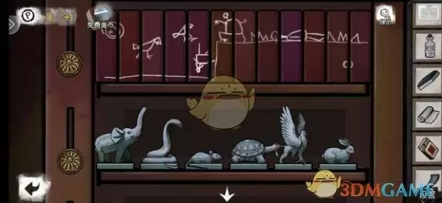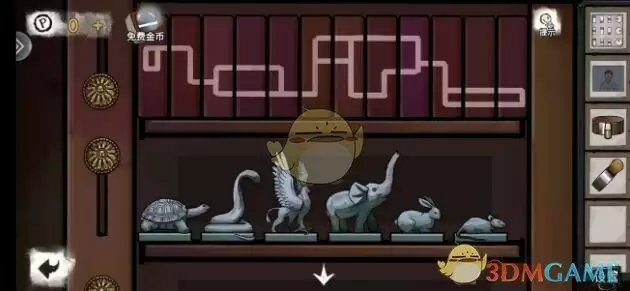 先去走廊用凿子撬开把之前调查的地板砖获得拉杆和金属装饰,再把木块放到钟表下方的凹槽里得到把手,回到浴室用扳手拧开这里玩一个轻松的小游戏,把水龙头安在洗手池上,回到之前挪开地毯的房间,将把手安在地毯下面的盖子上,用螺丝套装固定后打开,得到巨型针筒,把金属装饰嵌入盒子得羊头。