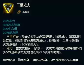 2.提供的伤害、控制和高额攻速强化自身作战能力,但不是打出线上压制力的主要原因。