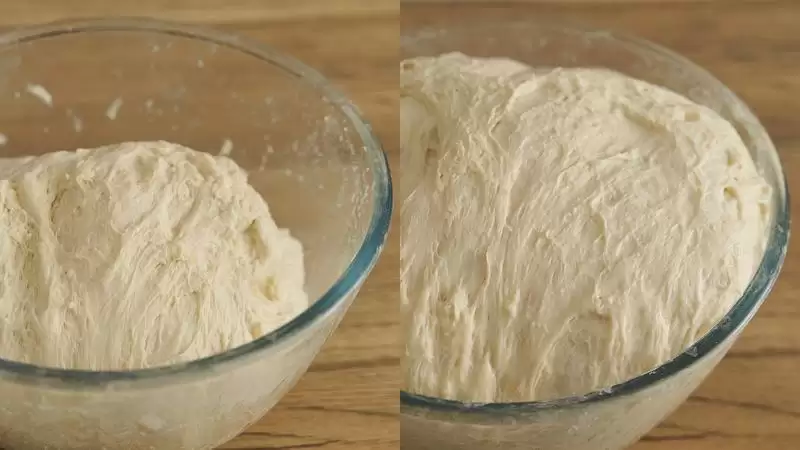 面团配方里水的含量很高,饧发的过程其实也是面粉“水合”的过程,充分的水和面粉经过充分的时间,就能“自动”形成面筋。