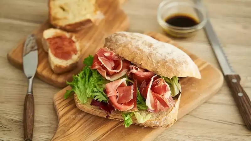 夏巴特面包作为三明治面包也是非常适合的,代替普通吐司提升口感和风味。配方中只加了橄榄油,没有额外加糖,简单搭配一点蛋白质和蔬菜,就是完美的轻食组合。