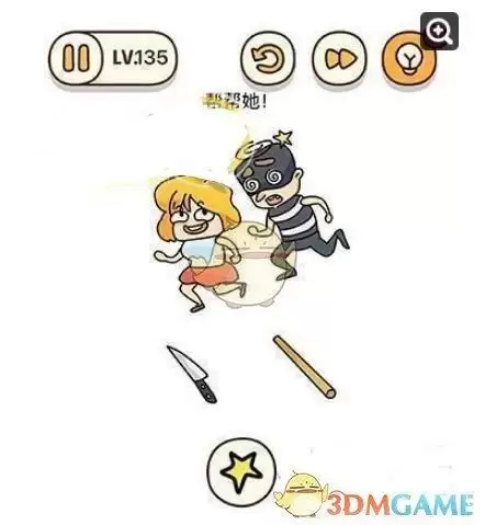 《烧脑大师》手游是一款非常益智休闲的小游戏,游戏第135关【帮帮她】怎么过呢?下面是3DM手游网小编给大家带来的《烧脑大师》手游第135关通关攻略答案介绍,还不清楚具体如何过关的小伙伴一起看看吧。