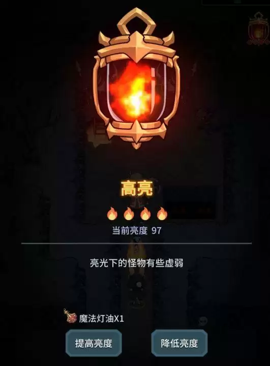 高亮灯配合减怪物属性的灯可以降低玩家开荒的难度