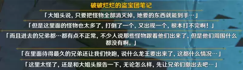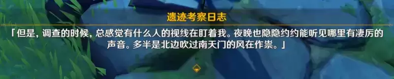 可翻遍三大遗迹所有的书籍资料,基本都是讲述遗迹本身的历史。但除了书籍之外,遗迹附近还有一些盗宝团留下的考察记录。其中遁玉陵旁边的那本日志显得有些奇怪:它提到了远在珉林地区的南天门。