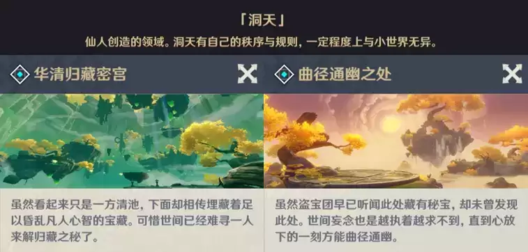 我们曾在主线剧情中见过萍姥姥的壶中世界,华清归藏秘宫和曲径通幽之处的地图也明显和其他秘境有所不同,这些都属于外景之术制造的洞天领域。