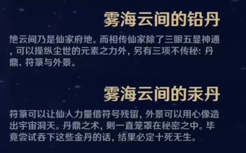 根据雾海云间系列材料的描述,璃月仙人有三项不传秘法:将神通之力融入合金的丹鼎之术、通过符咒封存仙力的符箓之术、以及制造领域空间的外景之术。