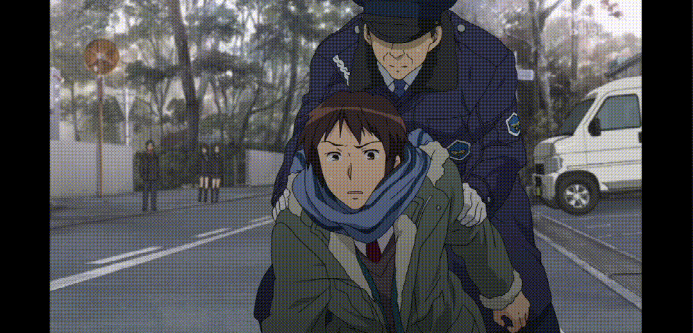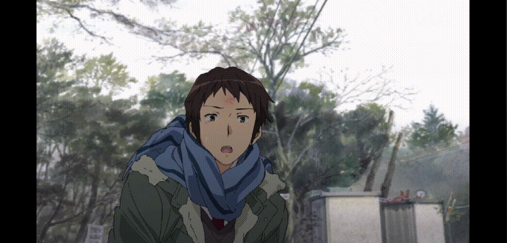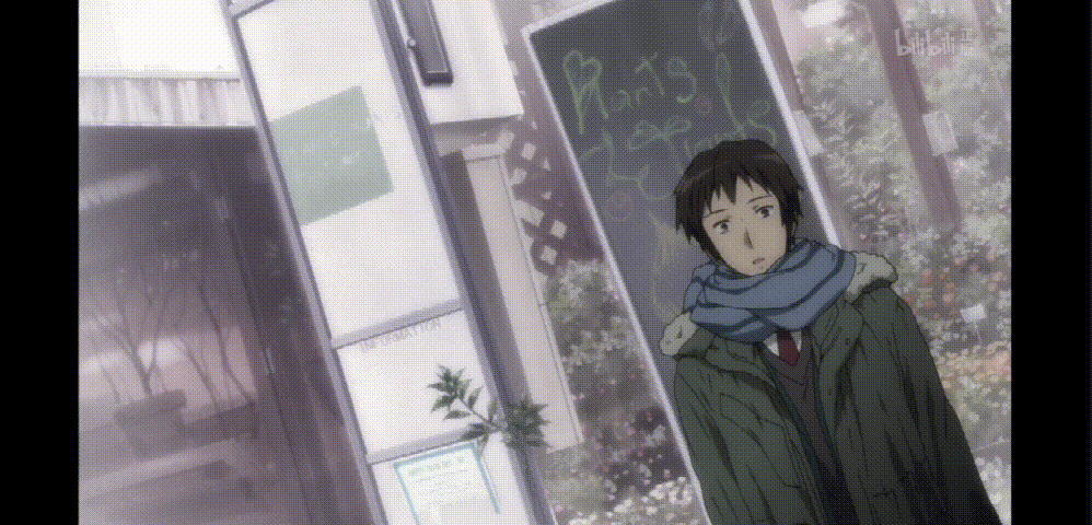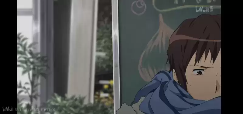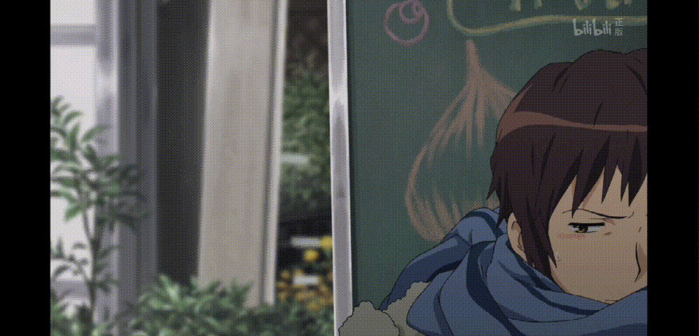 同机位但景别拉近,阿虚的特写镜头,暗号对上了(滑稽)。