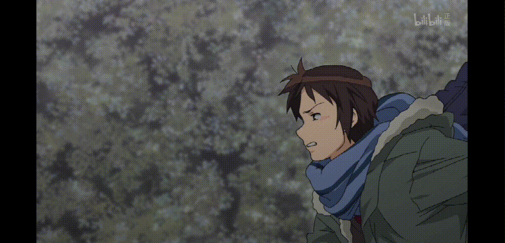 万策尽(滑稽),只能赌一把了。特写镜头强化阿虚急迫的心情,再观察得仔细一点,这里阿虚说话产生的白雾与之前相比更是浓郁了许多,从视觉上模拟大声喊叫的效果,进一步表现阿虚的急迫。