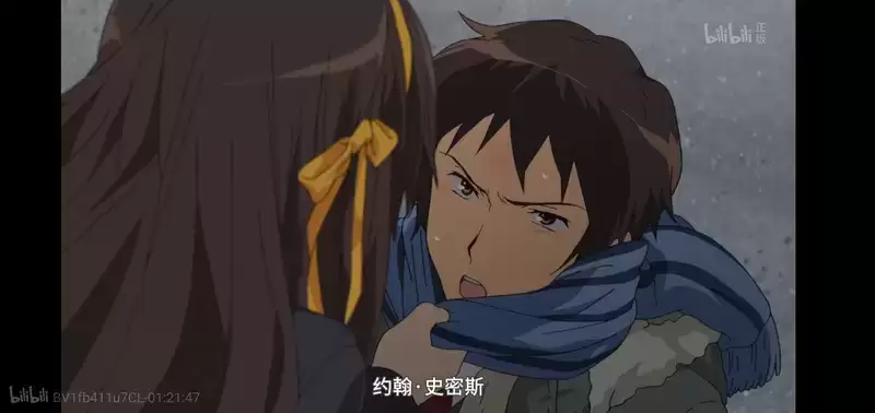 镜头回到阿虚的正脸近景,在带出阿虚反抗保安动作的同时,强调人物的主观感受,阿虚不知道团长是否与他有这段共同的记忆