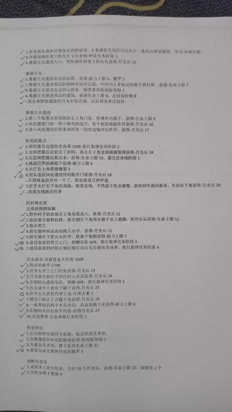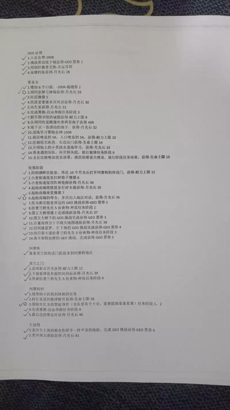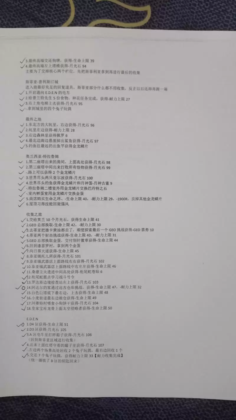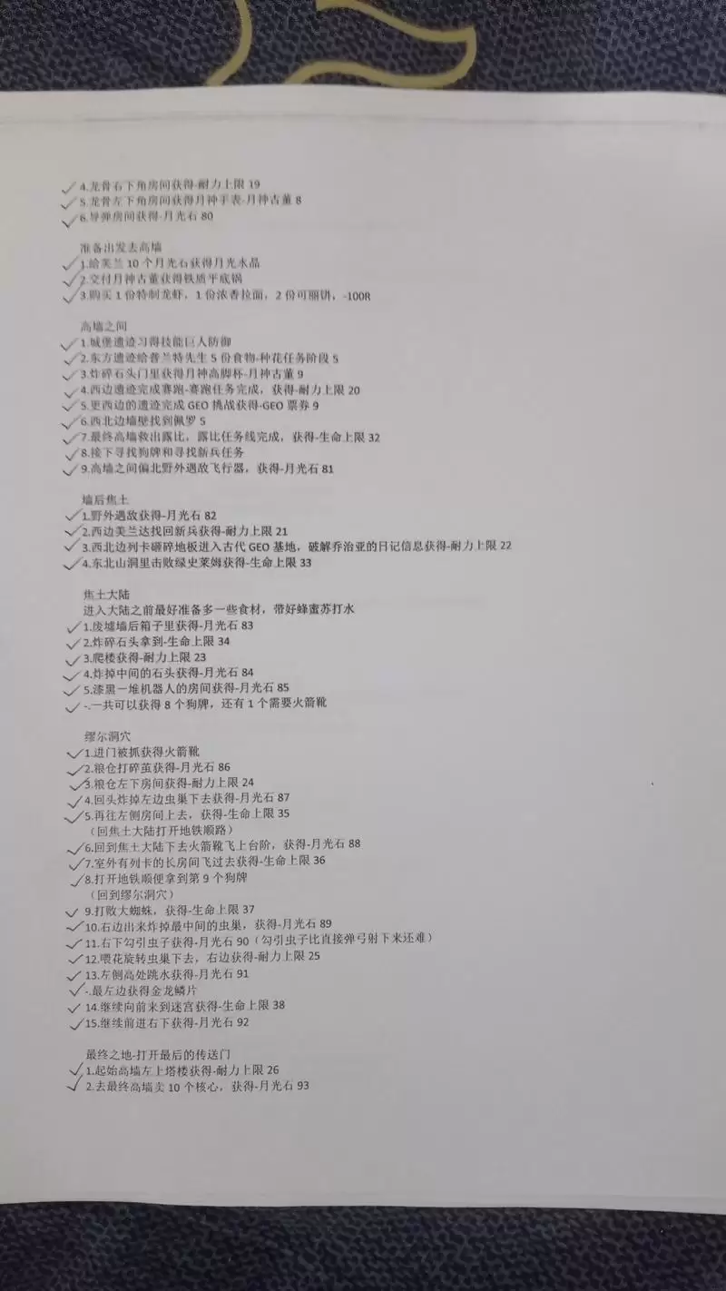 最后发几张无关紧要的东西,是我在录制的时候使用的纸质文件,虽然当做攻略指引来用应该绰绰有余了,不过这只是起一个辅助记忆的功能罢了。