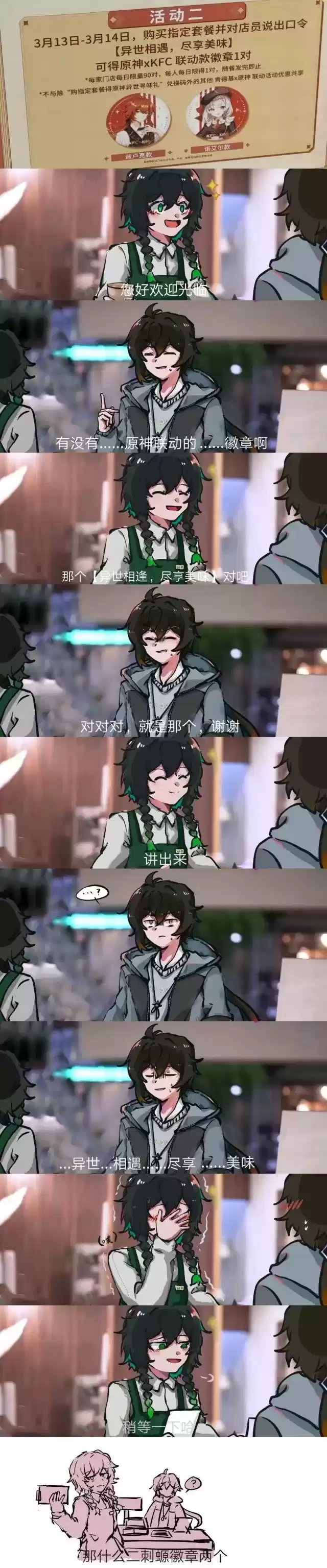重点就在这个第二款的活动,在限定期限内购买指定套餐并且对店员说出口令“异世相遇,尽享美味”。