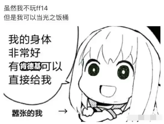 比如用FF14的任务搜索器页面修改的载入任务画面,以及副本名字;又或者,表达自己真的吃不下了的表情包。