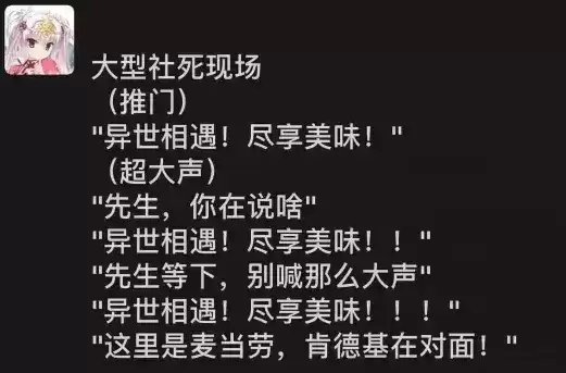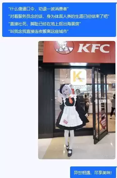 原因无他,这次参与的主要方式是:在肯德基餐厅这种公众场所喊二次元口号。