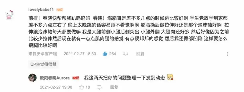问题大概是1、何时运动比较好 2、燃脂操后做拉伸还是泡沫轴 3、拉伸和泡沫轴是否要每天做 4、腿型有各种问题怎么办 5、臀部凹陷【1】建议是在下午4点之前运动。因为4点之后新陈代谢会减慢,运动表现和效率肯定是在新陈代谢高的时候会更好。但是!运动效果其实什么时候练都差不多,比如我就喜欢睡觉前两个小时练,因为我训练强度比较大,练完了就只想躺尸[妙啊]不过普遍建议是不要在睡前两个小时练,肾上腺素分泌会让交感神经活跃,副交感神经控制降低,直接导致睡不着。对于学生党上班党来说,没必要非得用一个整段的时间来运动,可以分成3个15分钟/20分钟。分段运动效果是一样的。