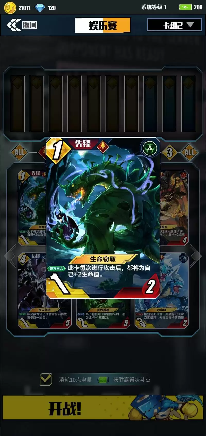最后:此套卡经过本人数十场实战(娱乐+友谊,因为系统没2级所以没开排位赛)检验,只要对局细想慢放卡,不出失误基本上都能赢。