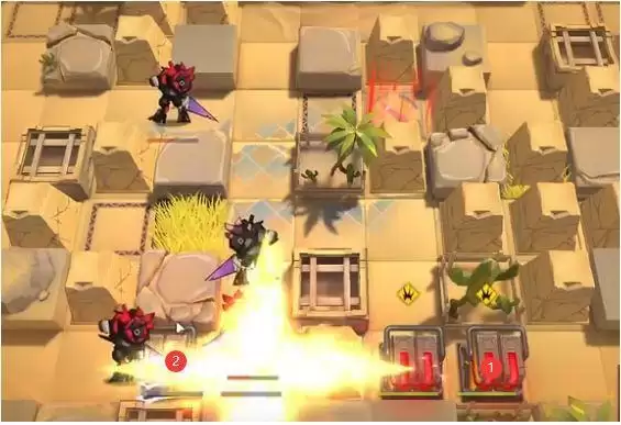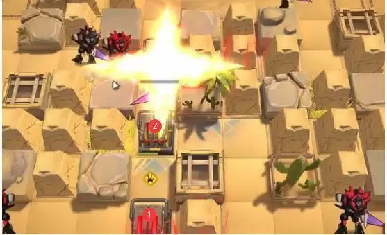 然后在左上登场的这个普通畸变体走到第三个炸药的爆炸范围后引爆第三个炸药(如下图所示)。