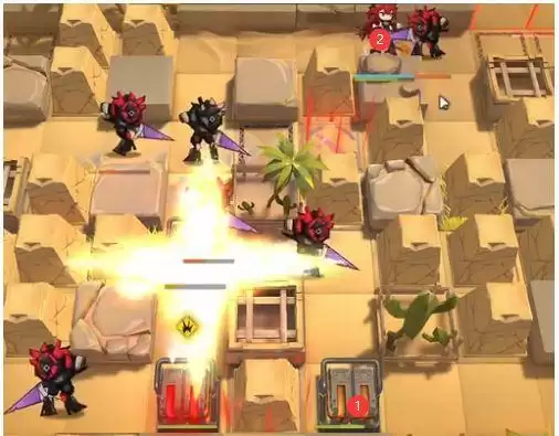 然后在左上角刷出普通的畸变体(黑色的)并走到第一个炸药爆炸范围后,引爆第一个炸药。