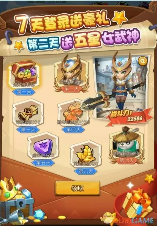女武神想要免费获得非常简单,在第二天登录游戏的时候去【7天登录送豪礼】中就可以领取到!
