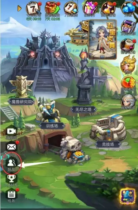 拉黑好友的前提是对方是你的好友,游戏达到一定等级后会开放好友系统,然后点击【主城】左下方的【好友】功能中可以添加好友!