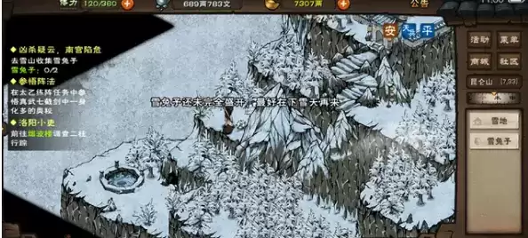 玩家在凶杀疑云南宫陷危主线任务中,有一个支线任务就是需要玩家去雪山收集雪兔子,一共需要收集两个雪兔子。