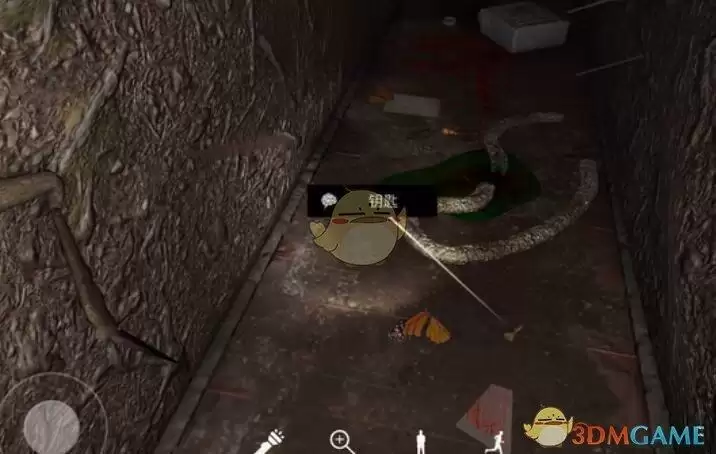 位置:此钥匙获取的条件则是,找到蚊帐房间里面全部的线索之后,再次回到一开始的隧道(走廊)那里,在如图所示的位置点击获取。之后回去使用它打开蚊帐房间里面的另一扇门(标本房)。