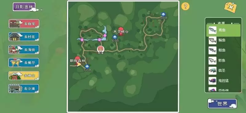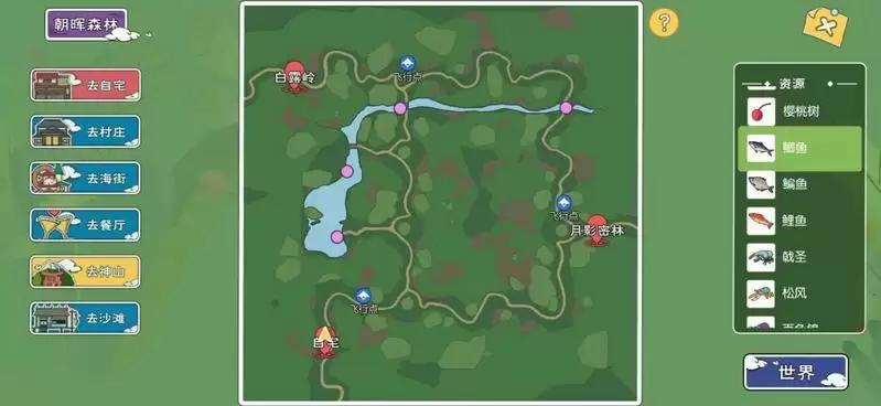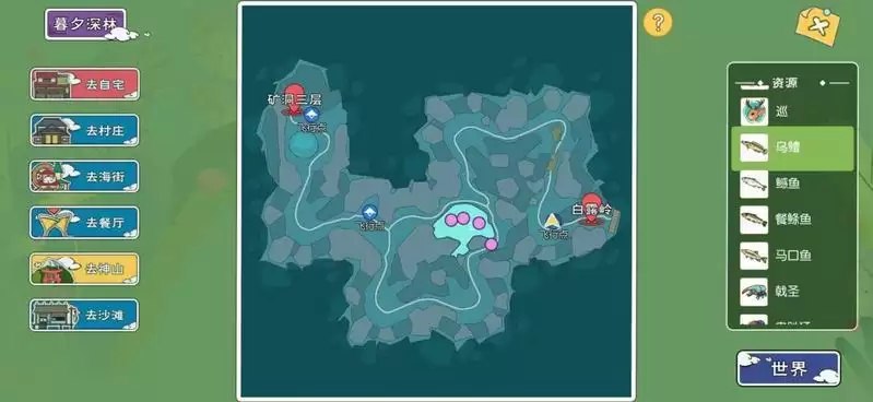 3、暮夕深林:【乌鳢/鱤鱼/餐鲦鱼/马口鱼】4种鱼类可以垂钓。