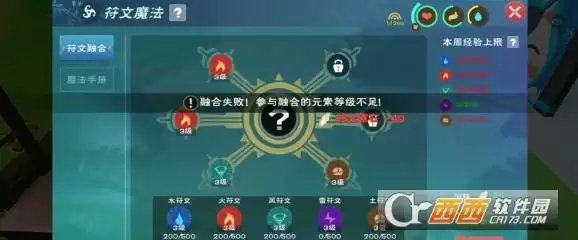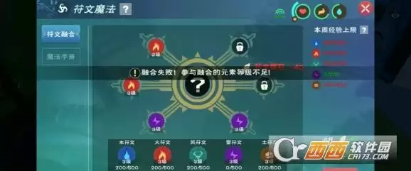 7个四级魔法,用排列组合试了70次,出现这个提示说明配方正确。另外新的二级魔法是风火雷土(符文灵箭)应该没有遗漏了。