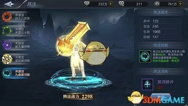 除了技能之外,每一种阵法都将额外提升玩家的基础属性,玩家只能同时装备一种阵法,因此根据自身的情况选择至关重要,才能达到克敌制胜的效果。