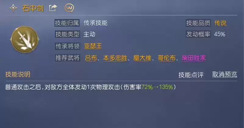 2号技能推荐【石中剑】,配合自带技能的群攻效果,相当于每轮可造成两次AOE伤害。
