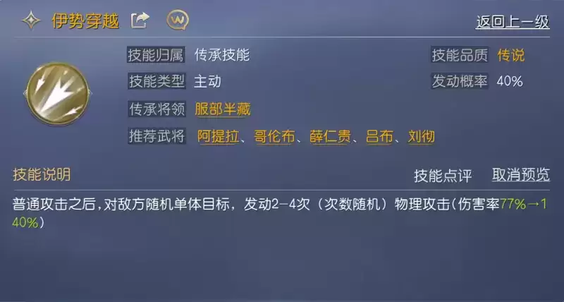 1号技能推荐【伊势穿越】,单纯的群攻增益对阿提拉的提升并不大,配合伊势穿越可提高每回合的输出量。