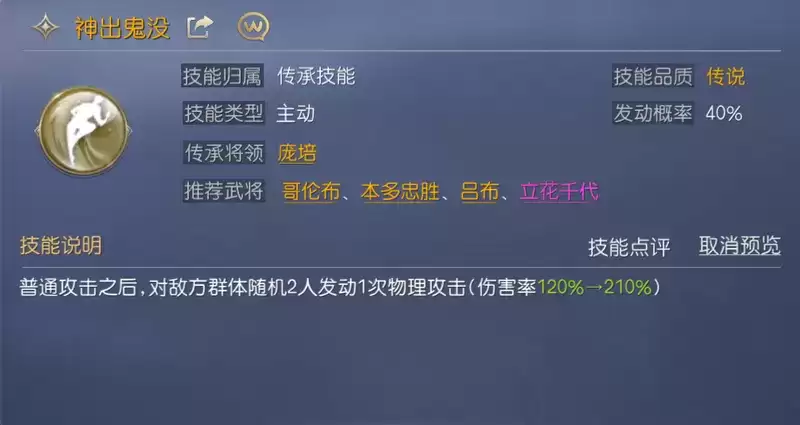 2号技能推荐【神出鬼没】在普攻之后,可对敌方群体2人发动1次高伤害的物理攻击。在受到【连击】、【群攻】的加成之后无论是开局清场还是残局收割,2波AOE的爆炸输出都可以轻松完成。