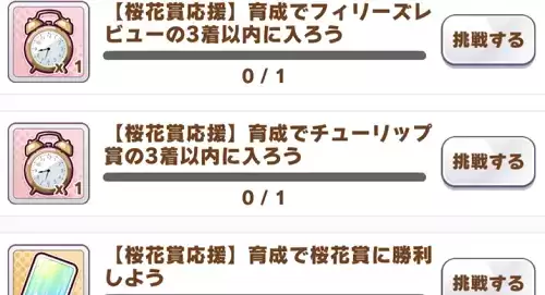 樱花赏应援任务一共要打两个g2的比赛,都在第二年3月前半,最后打一次樱花赏,2年4月前