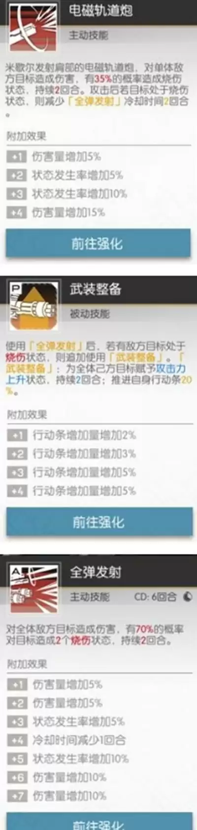米歇尔,燃烧队核心,自带的全体攻击提升buff很实用,缺点是不能百分百挂上烧伤buff。米歇尔主要靠大招挂上烧伤,上攻击buff,再用1技能快速刷新大招。米歇尔主要靠挂烧伤输出,因此状态命中非常重要,因为被动可以给全体攻击提升buff,让米歇尔可以作为辅助输出手混在大部分队伍中。