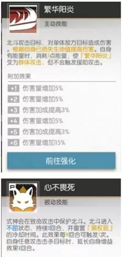 北斗虽然技能组看起来很强,但实用性很低,北斗虽然是靠损失的生命值加成,但可能没有实装,如果按生命值百分比加成也不需要堆生命值。在触发不屈后,北斗必须每回合都干掉一个小怪才能保证可以持续输出,这对攻击伤害的要求非常高,而且在boss关北斗会非常乏力。北斗只适用于需要清理小怪的场合,前中期不推荐练。