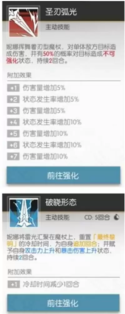 妮娜需要堆暴击,单体攻击虽然伤害很高,相比北斗爆发的条件简单了多,适用性也比北斗强。将2技能升级后可以在推图时作为收割角色,但boss战相对比较乏力,没办法作为万金油角色。但能做到全程自带buff,配合减防角色可以收割小怪。(一个合格的魔法少女不应该用普攻!)