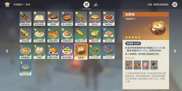 不过从食物上的这些小细节上来看,官方还真是下了一番功夫,不过玩家在平时制作食物的时候要选择一些实用的食物,特别是加攻击和暴击的可以多做一点,恢复类的最好别做,因为在做任务的时候就能获得很多,而且游戏当中是有奶妈存在的,所以基本上不打boos的话用不上食物恢复,然后玩家们有香菱的话,可以用她来首选制作,因为香菱的天赋是在做食物的时候能有一些几率获得双倍的产出,运气好的话食物基本上是吃不完的。
