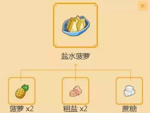盐水菠萝是厨房二级料理,可以去完成料理学习任务解锁。