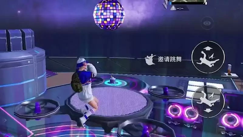 在飞艇上,玩家可以看到一个超大的舞台,在走入舞台范围时,玩家会随着音乐起舞,还可以在空中自由舞蹈。玩家走到舞台中心后,会出现一个邀请跳舞的图标,点击图标后,玩家就可以和队友一起跳舞。