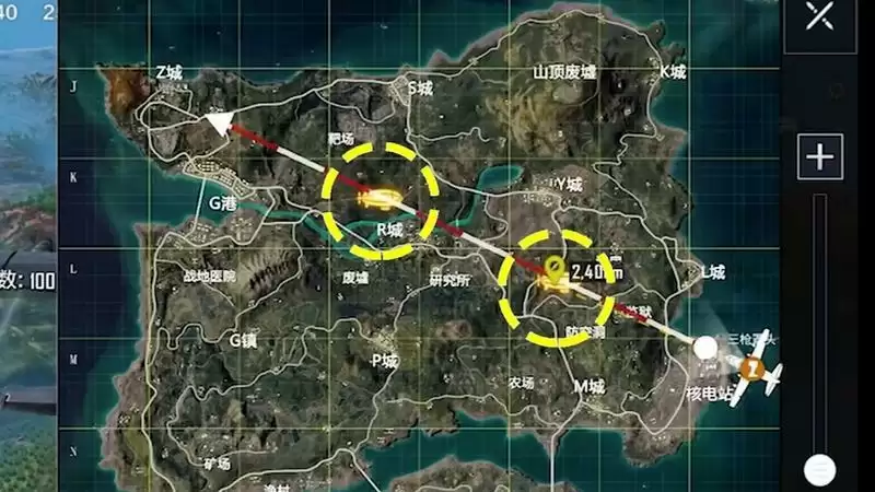 玩家在飞机上时,可以在飞机的行驶路线上看到两个飞艇图标,这就是本局游戏第一阶段飞艇的所在位置。
