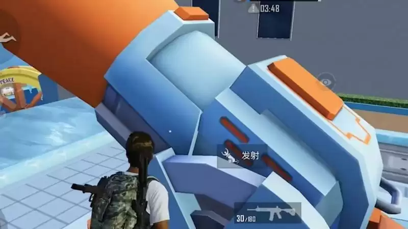 在飞艇上,除了音乐舞台,还有泳池派对,玩家可以在泳池上找到一个炮台,在接近炮台时,会出现一个发射的按钮,玩家只要按下这个按钮,就可以被发射到飞艇的中心!