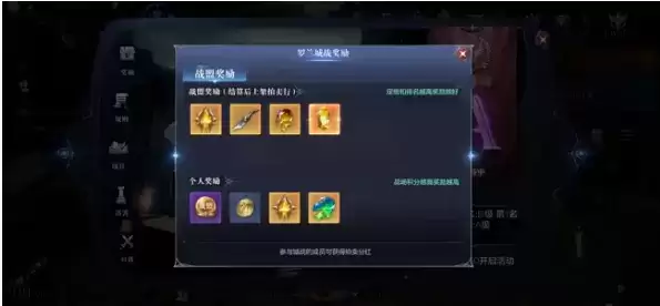 活动奖励:活动奖励主要分为两种,分别是战盟奖励和个人奖励 战盟奖励:罗兰印记、精琢刻刀、高级武器萤石精粹、玛雅晶石 个人奖励:高级防具萤石精粹、罗兰印记、战盟贡献、金币