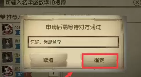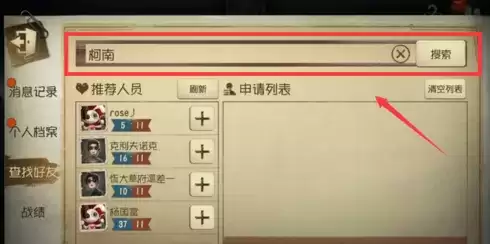 6、如果有特定好友添加则直接在搜索框输入玩家昵称搜索即可。