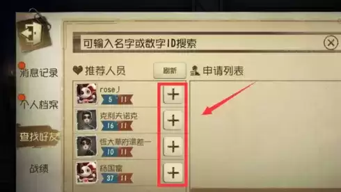 4、刷新后游戏会自动给我们推荐合适的玩家供我们选择添加,点击后面的【+】可添加好友。