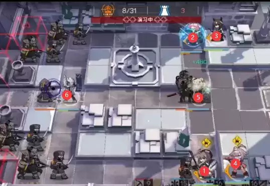 信赖队的打法非常的简单粗暴,完全没有任何技巧可言,只需要塞雷娅和煌两位干员就能搞定,开局先放塞雷娅在右侧,注意冲左侧攻击,煌因为二技能暖机完毕之后可以打两格,所以完全可以隔着一路隔山打牛。